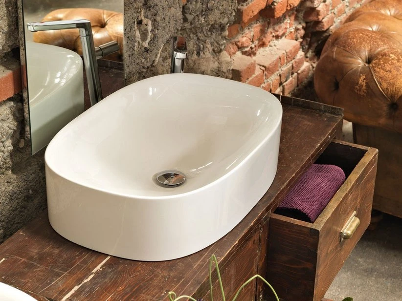 Lavabo Da Appoggio Wild 60 In Ceramica Lucido Bianco
