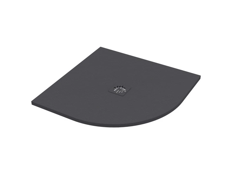 CRYPTO piatto doccia in resina effetto pietra semicircolare 90×90 spessore 2,5 cm con griglia copripiletta in acciaio inox grafite lucido.