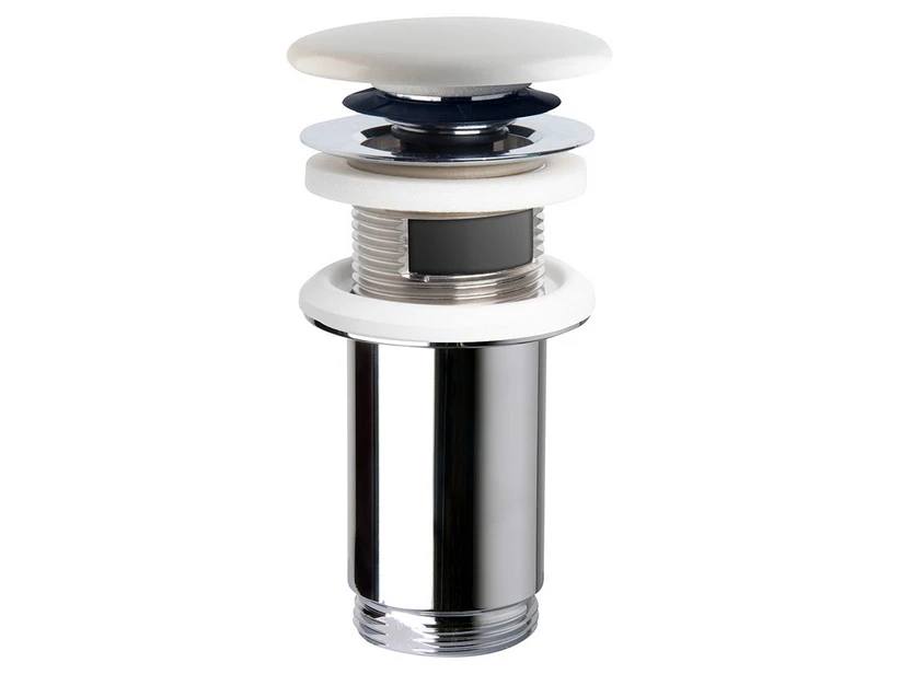 FOREVER piletta lavabo click-clack universale h90mm con/senza troppopieno con tappo tondo in ceramica bianco opaco.